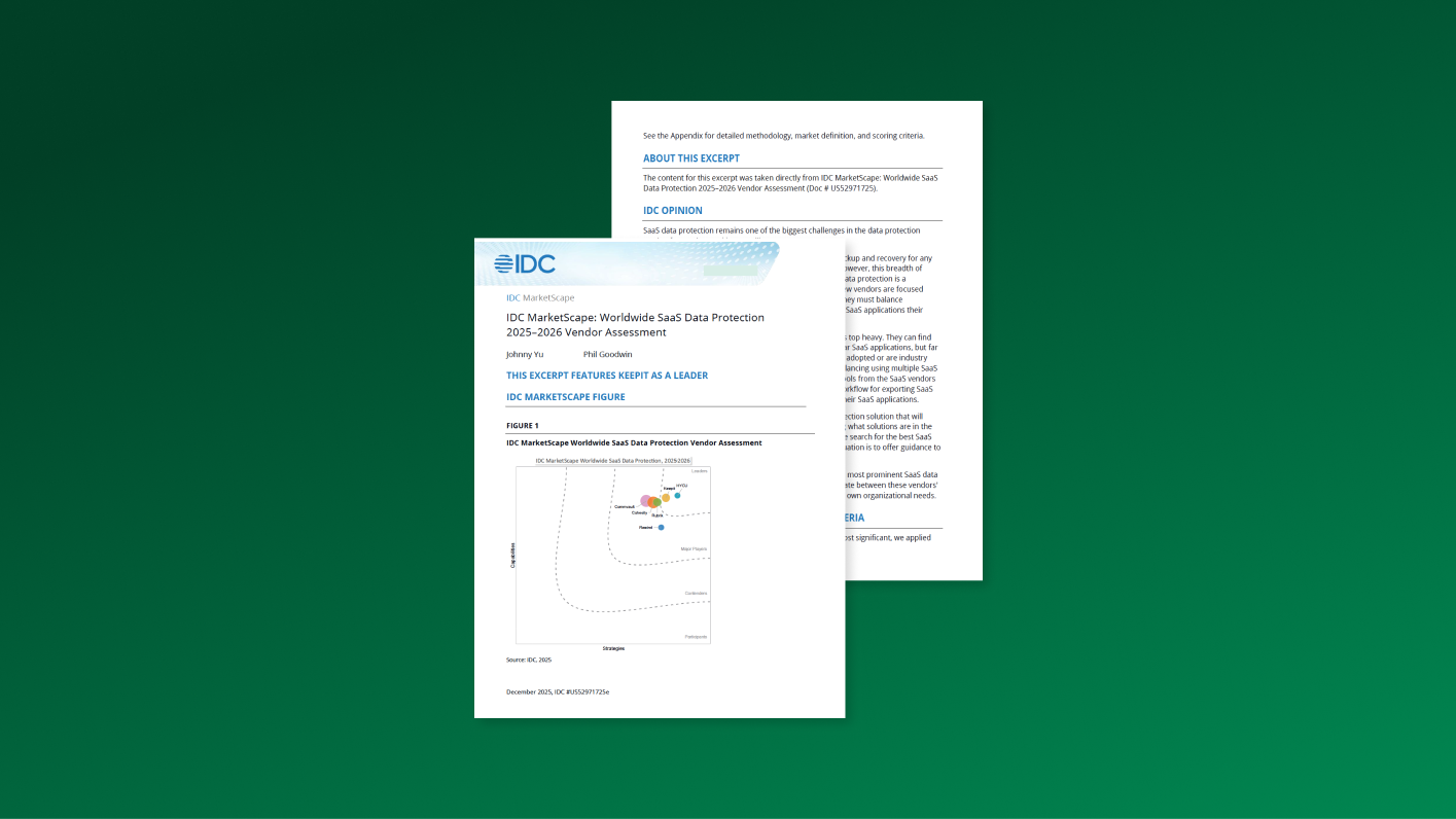 Keepit has been named a Leader in the IDC MarketScape: Worldwide SaaS Data Protection 2025–2026 Vendor Assessment. We believe this affirms our focused approach to protecting SaaS data with independence, resilience, and control.