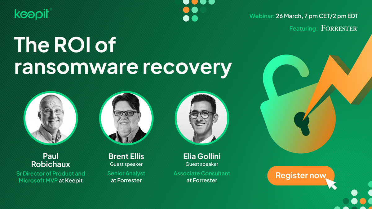 As a follow-up to the Forrester study, Keepit will be holding a webinar at 2 p.m. EDT on March 26, titled, “The ROI of Ransomware Recovery”. Hosted by Keepit’s Paul Robichaux, the webinar will feature guest speakers Brent Ellis, Forrester senior analyst, and Elia Gollini, Forrester associate consultant.