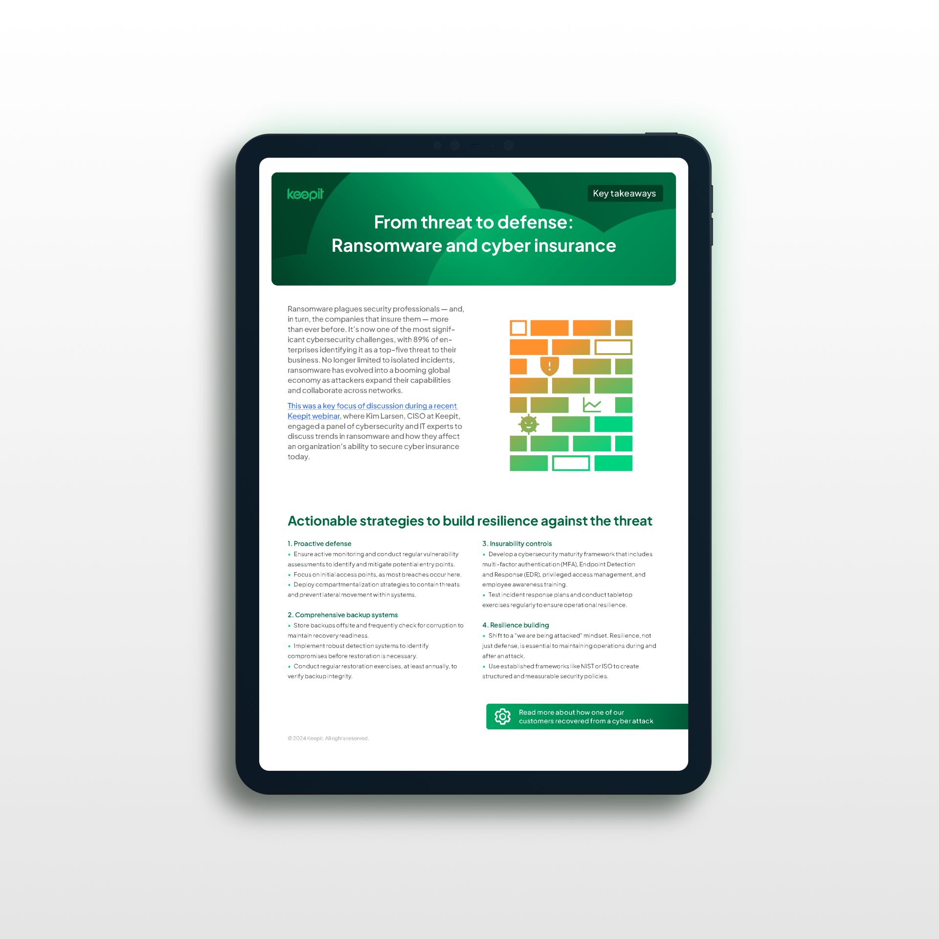Download our webinar handout now to enhance your resilience, gain insights into the evolving role of cyber insurance in combating ransomware, and meet the changing demands of cyber insurers with confidence.