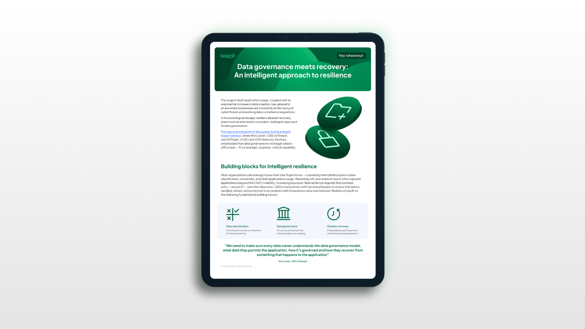 Data governance is no longer a back-office task — it’s a strategic pillar of cyber resilience. In today’s landscape of rapid SaaS expansion and escalating cyberthreats, disaster recovery (DR) must be built on a foundation of intelligent data governance. This was the central theme of a recent Keepit webinar, where Kim Larsen, CISO at Keepit, and Ulf Feger, vCISO and CISO Advisory Services, discussed how organizations can strengthen recovery strategies by embedding governance frameworks into their resilience planning.