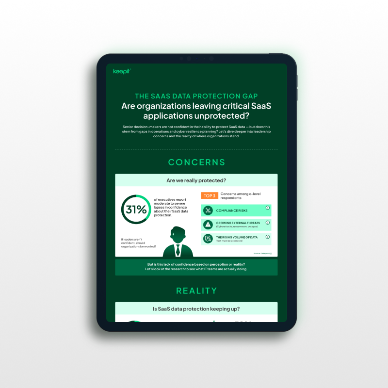 During 2024, Keepit conducted two surveys to investigate organizations’ current data protection measures and resilience capabilities. The results revealed senior decision-makers are not confident in their ability to protect SaaS data — but does this stem from gaps in operations and cyber resilience planning? This infographic dives deeper into leadership concerns and the reality of where organizations stand.