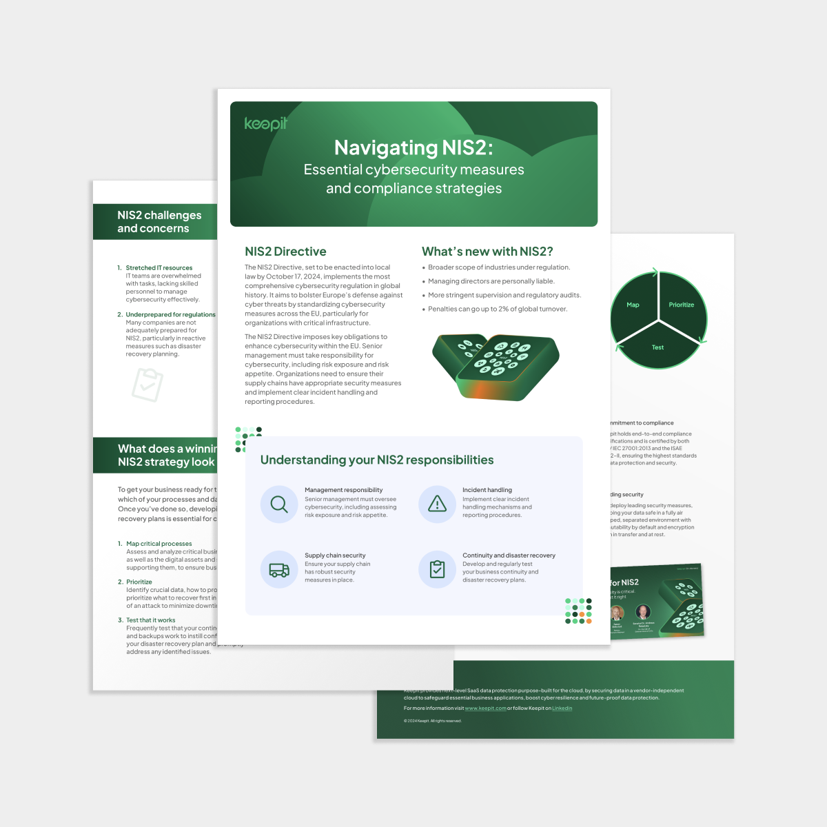 The handout includes our Map-Prioritize-Test framework to help guide you through the process of getting your business ready for the regulation and know how to comply with the business continuity and disaster recovery requirements of NIS2.