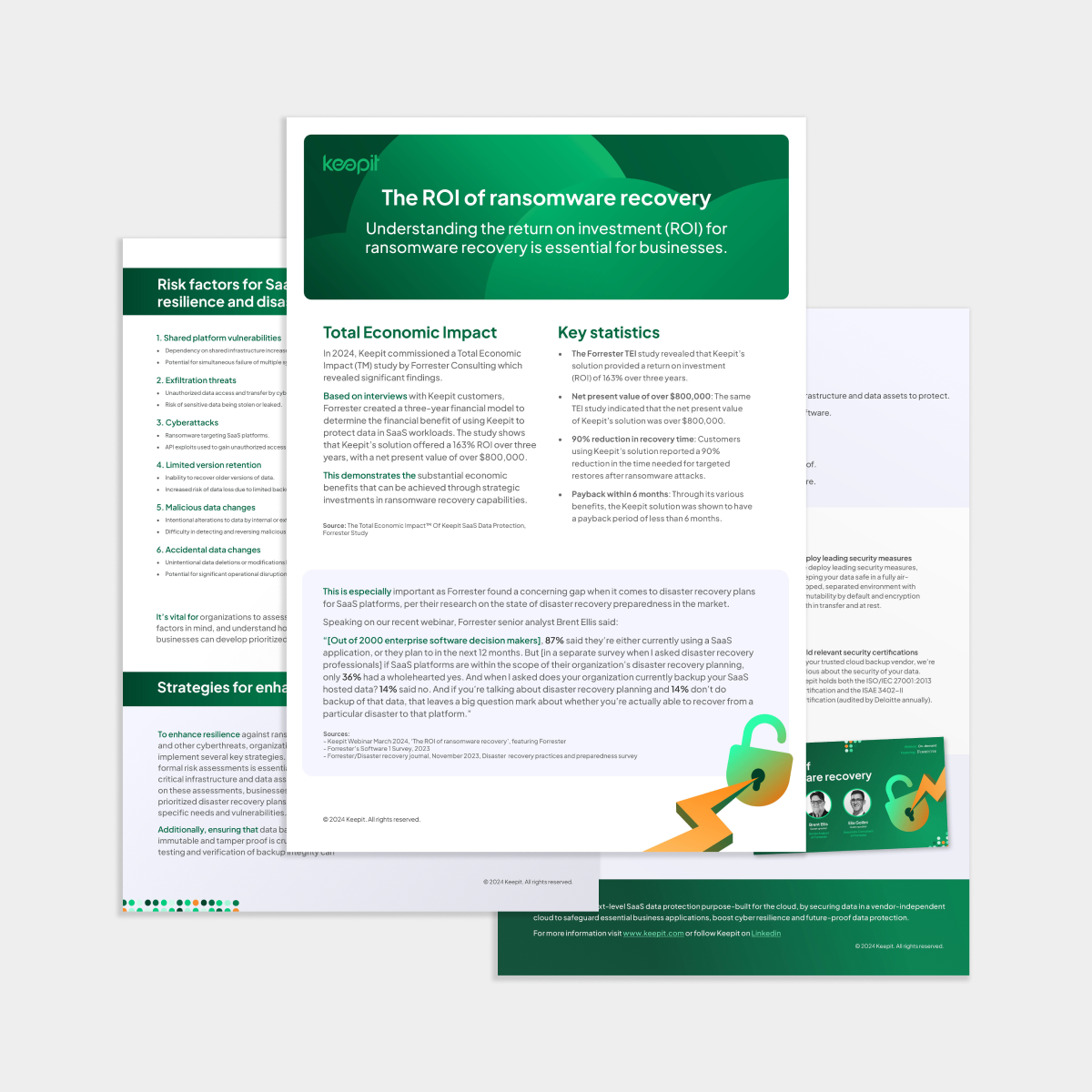 - How Keepit customers realized an ROI of 163% over three years, predominantly through a 90% reduction in recovery time