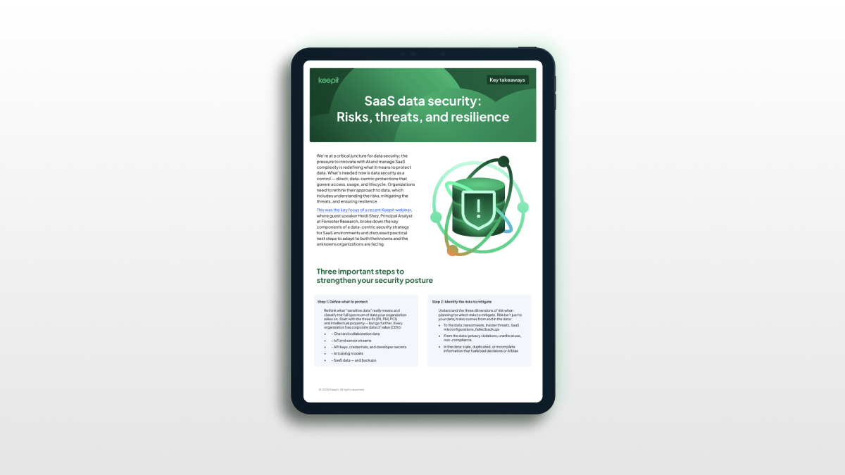 We're at a critical juncture for data security. As AI adoption accelerates and SaaS environments grow increasingly complex and interconnected, organizations must move beyond traditional thinking to implement data-centric security strategies that can withstand modern threats. This was the focus of a recent Keepit webinar featuring guest speaker Heidi Shey, Principal Analyst at Forrester, exploring how organizations can shift their approach to SaaS data protection and resilience.